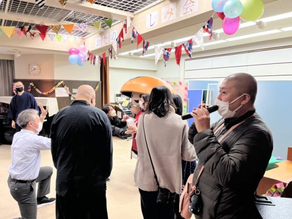 昨年同様爽やかな秋晴れの下、多くの利用者様と共に楽しい時間を過ごす事ができました。特別ゲストのこうやくんも全力でビンゴ大会を盛り上げてくれました。毎年こうやくんが来ることを本当に楽しみにして下さる方が多く、こうやくんもとても嬉しそうでした。